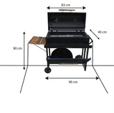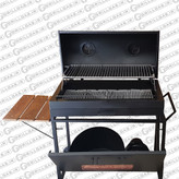 امکانات : پایه آهنی، دریچه های تنظیم هوا - مخزن متحرک ذغال - 2عدد چرخ جهت حرکت باربیکیو - فن - کشوی تخلیه خاکستر - دارای یک جفت میله بالابر سیخ